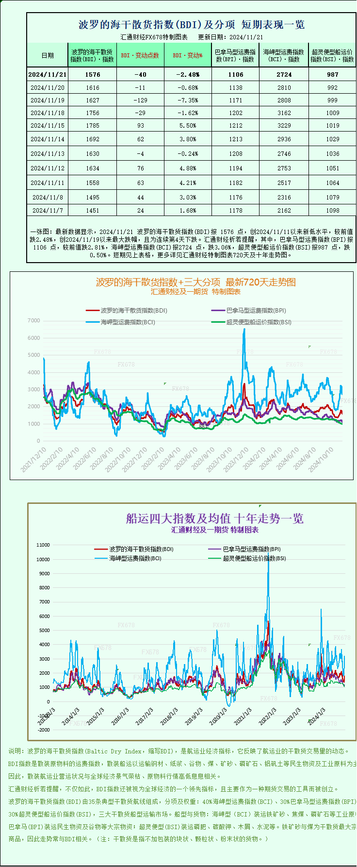 一张图:波罗的海指数因所有船舶板块均下跌而下跌