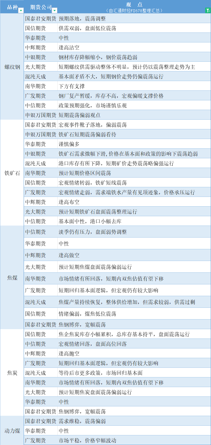 期货公司观点汇总一张图:11月13日黑色系(螺纹钢、焦煤、焦炭、铁矿石、动力煤等)