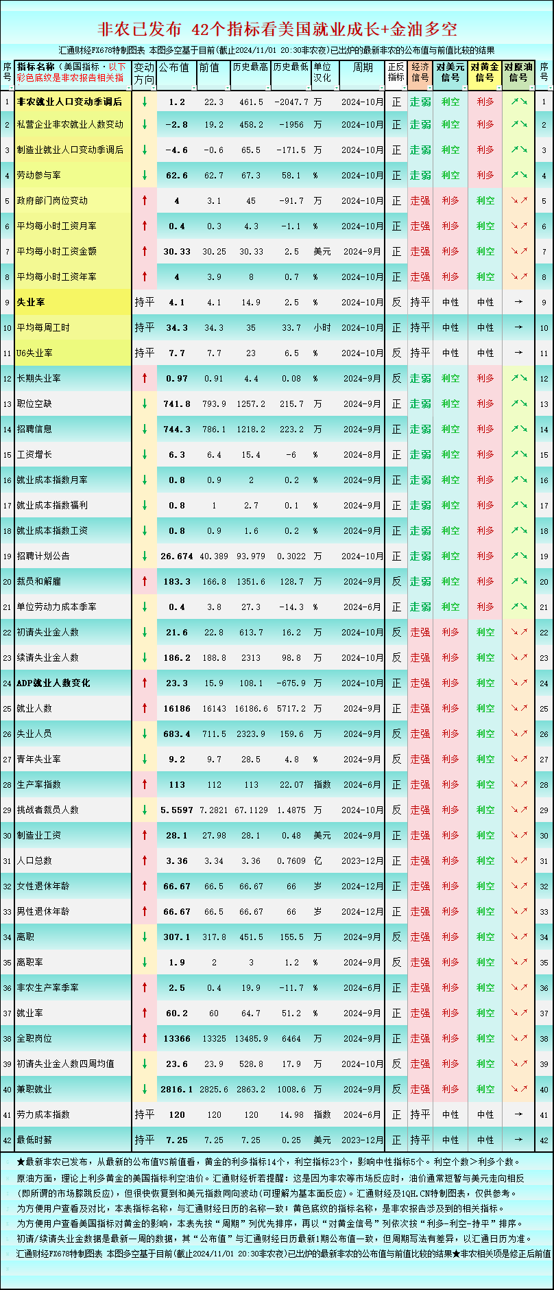 非农超级疲软,一张图看美国就业市场概貌,利多黄金的14个
