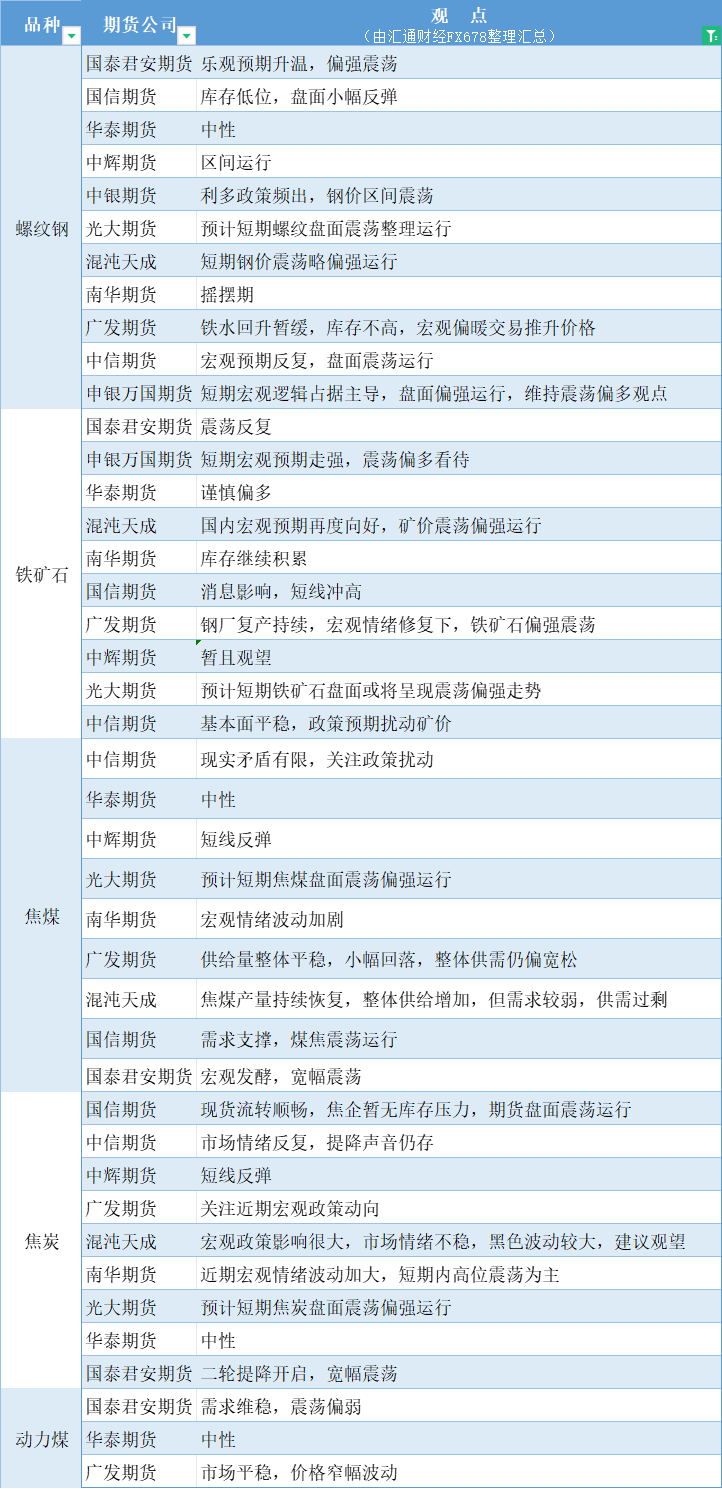 期货公司观点汇总一张图:10月30日黑色系(螺纹钢、焦煤、焦炭、铁矿石、动力煤等)