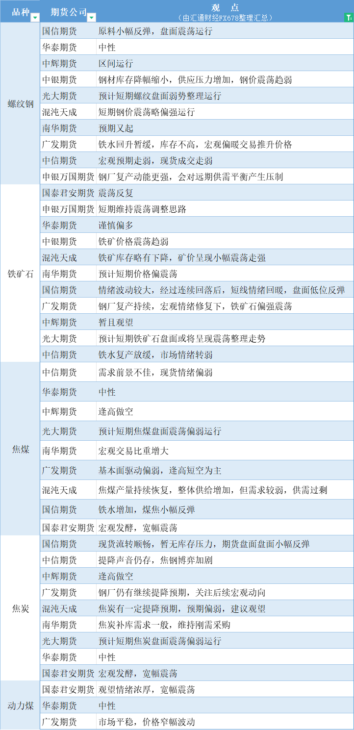 期货公司观点汇总一张图:10月25日黑色系(螺纹钢、焦煤、焦炭、铁矿石、动力煤等)