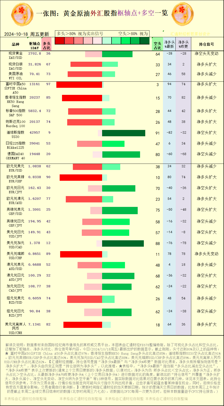 一张图:2024/10/18黄金原油外汇股指“枢纽点+多空持仓信号”一览