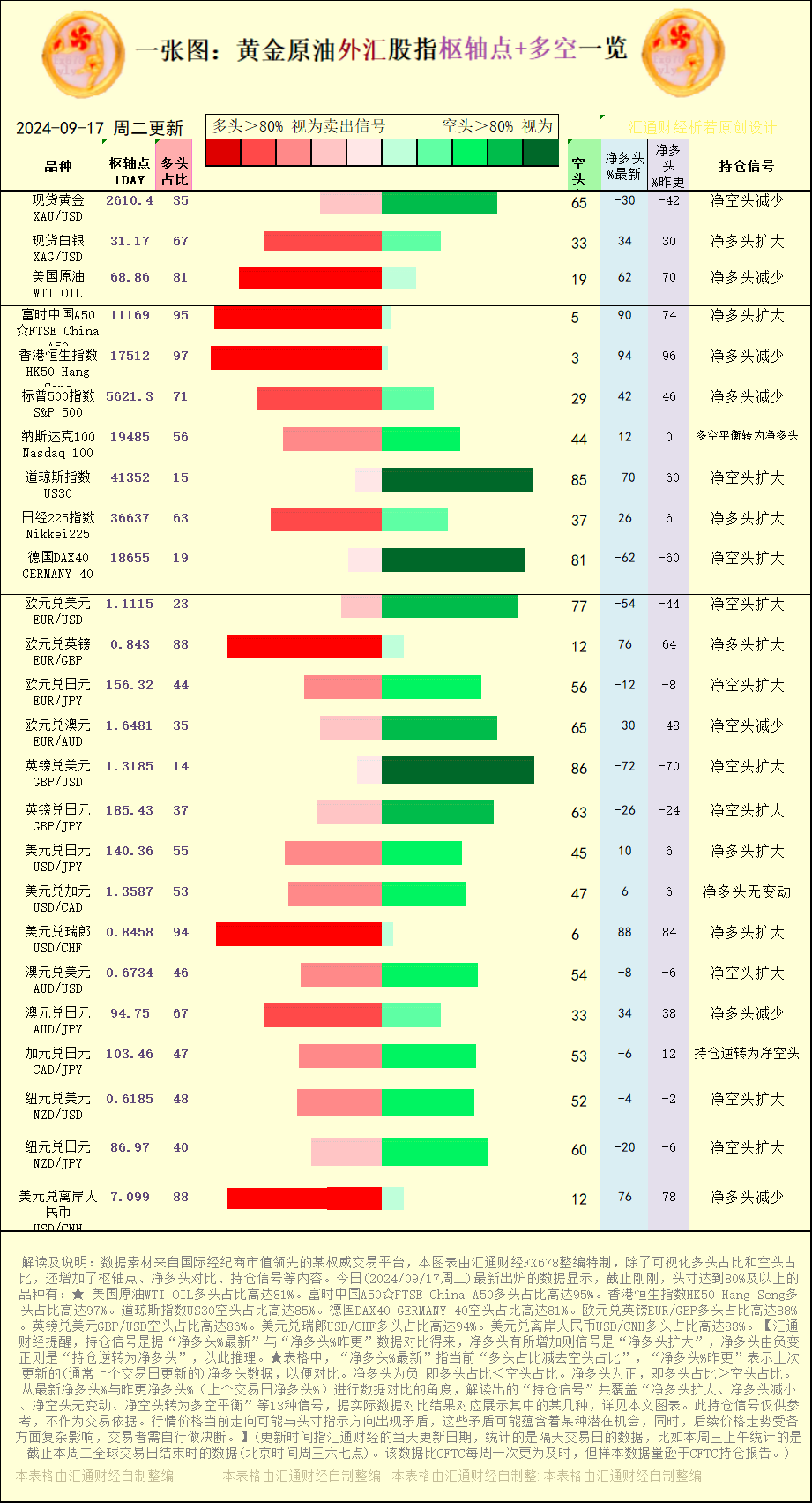 一张图:2024/9/17黄金原油外汇股指“枢纽点+多空持仓信号”一览