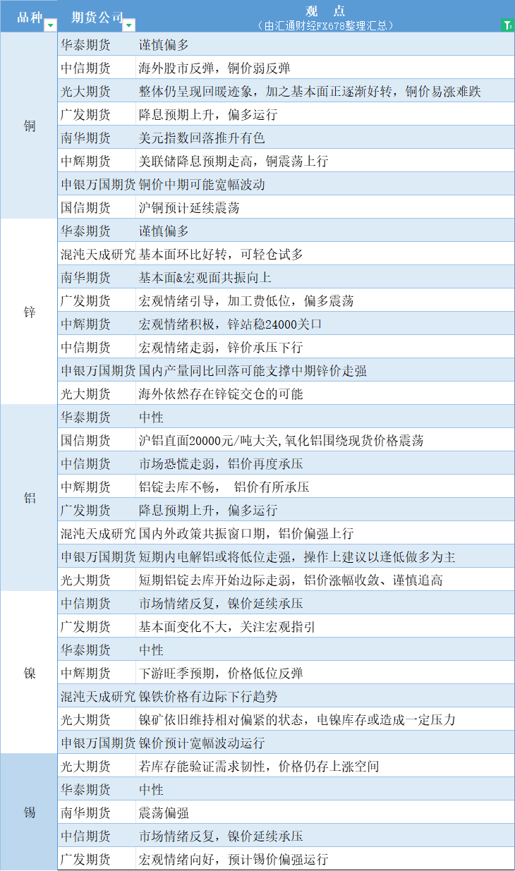 期货公司观点汇总一张图:8月27日有色系(铜、锌、铝、镍、锡等)