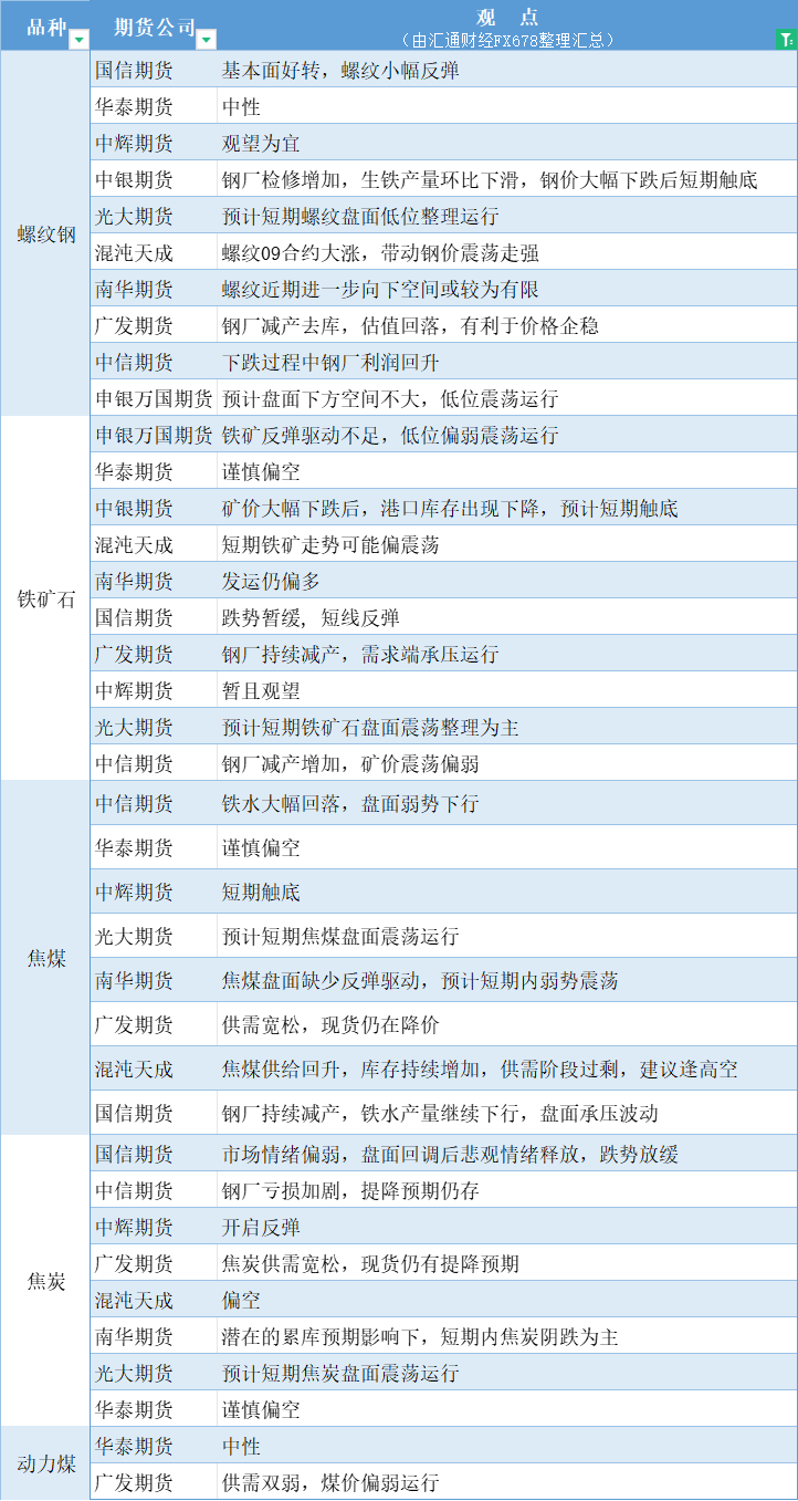 期货公司观点汇总一张图:8月20日黑色系(螺纹钢、焦煤、焦炭、铁矿石、动力煤等)