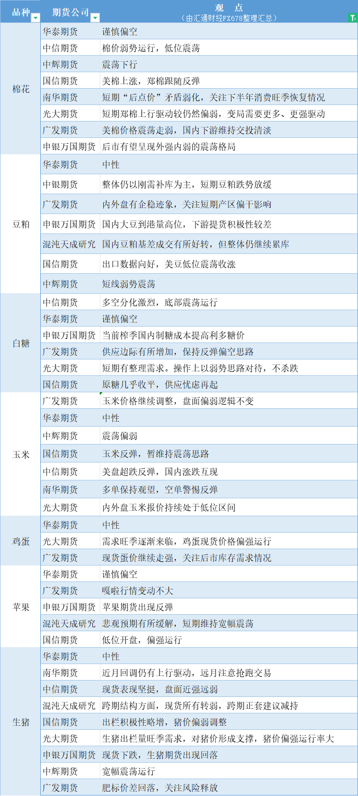 期货公司观点汇总一张图:8月20日农产品(棉花、豆粕、白糖、玉米、鸡蛋、生猪等)