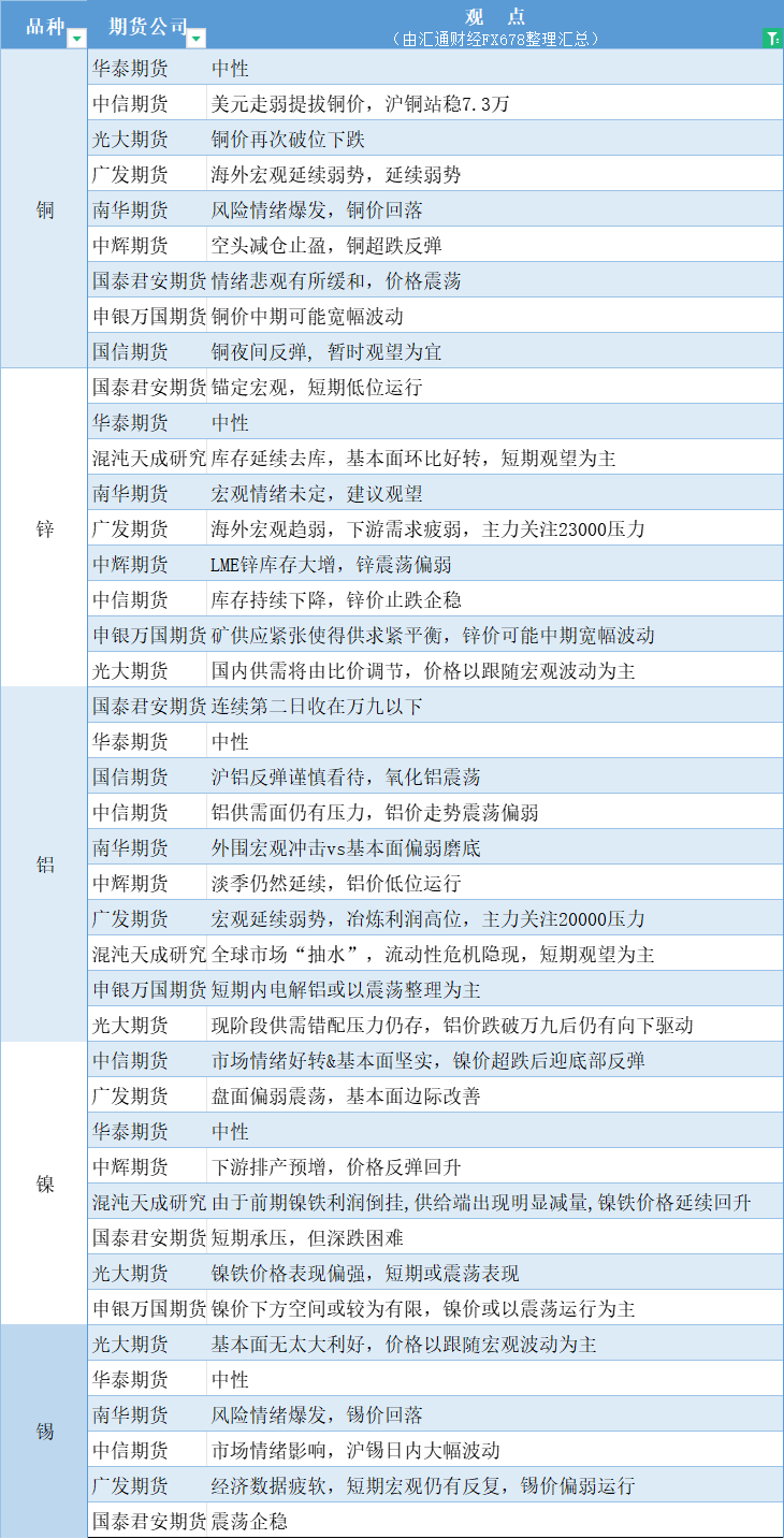 期货公司观点汇总一张图:8月7日有色系(铜、锌、铝、镍、锡等)