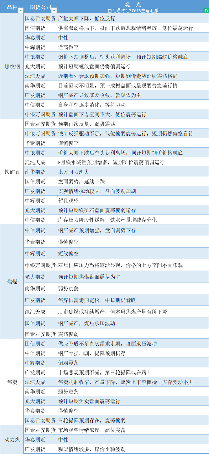 期货公司观点汇总一张图:8月7日黑色系(螺纹钢、焦煤、焦炭、铁矿石、动力煤等)