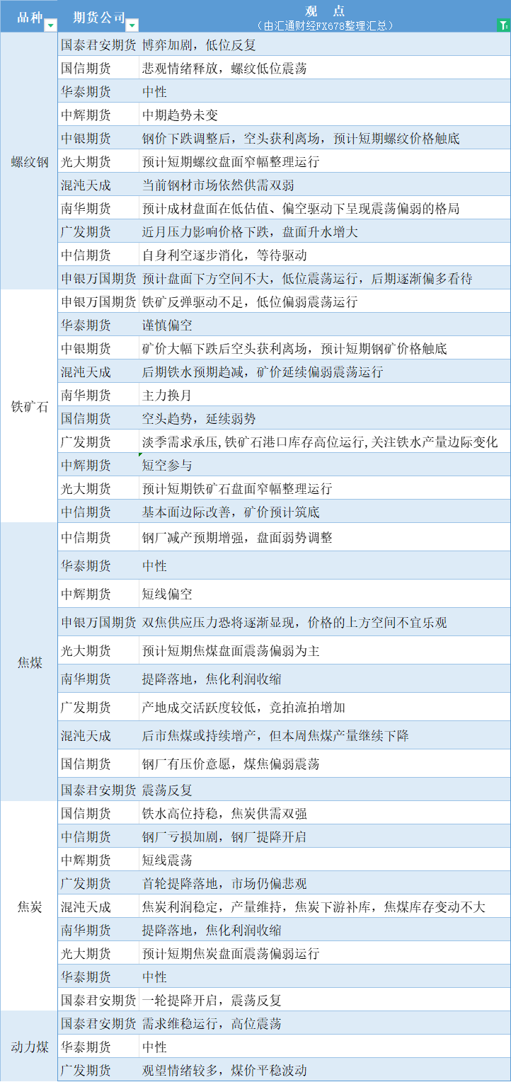 期货公司观点汇总一张图:7月30日黑色系(螺纹钢、焦煤、焦炭、铁矿石、动力煤等)