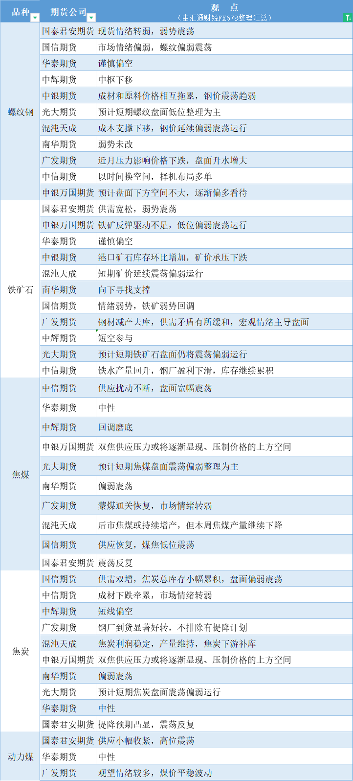 期货公司观点汇总一张图:7月23日黑色系(螺纹钢、焦煤、焦炭、铁矿石、动力煤等)