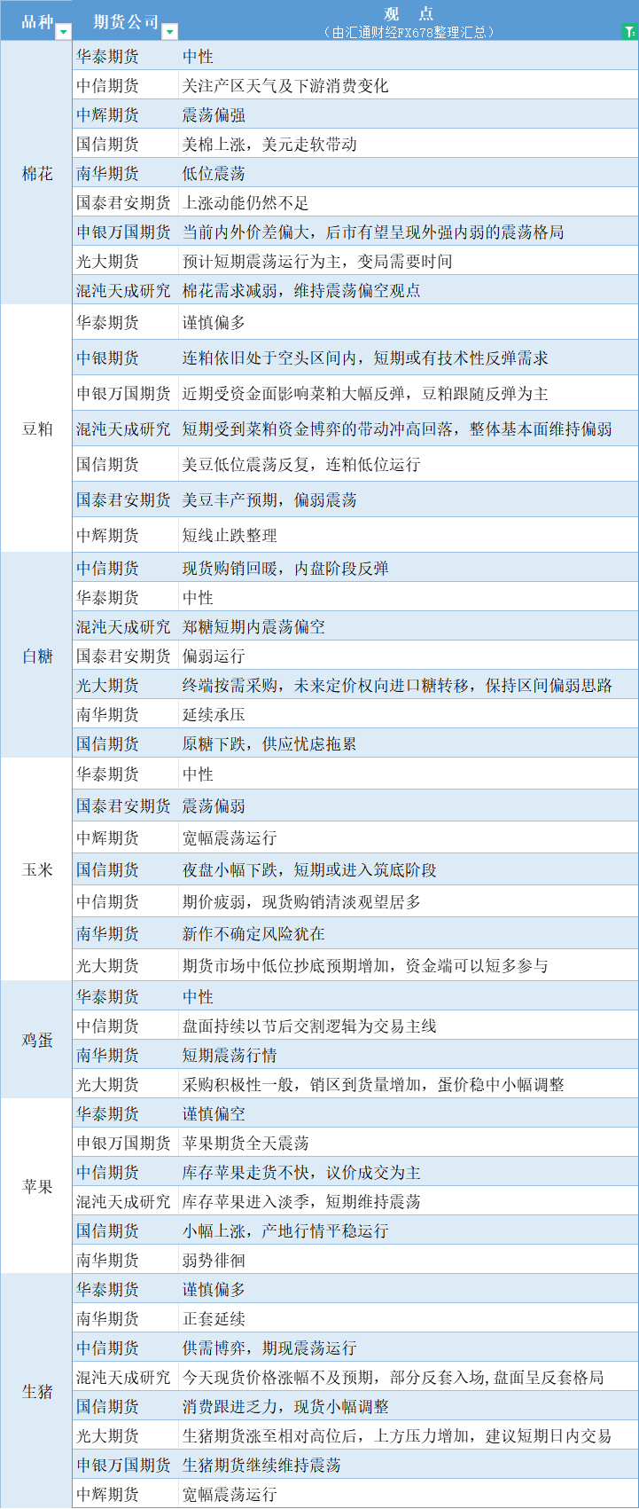 期货公司观点汇总一张图:7月18日农产品(棉花、豆粕、白糖、玉米、鸡蛋、生猪等)