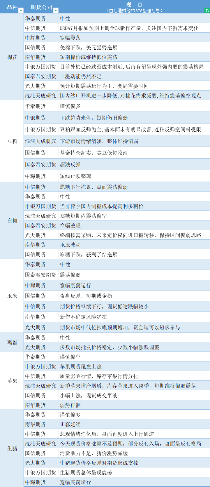 期货公司观点汇总一张图:7月17日农产品(棉花、豆粕、白糖、玉米、鸡蛋、生猪等)