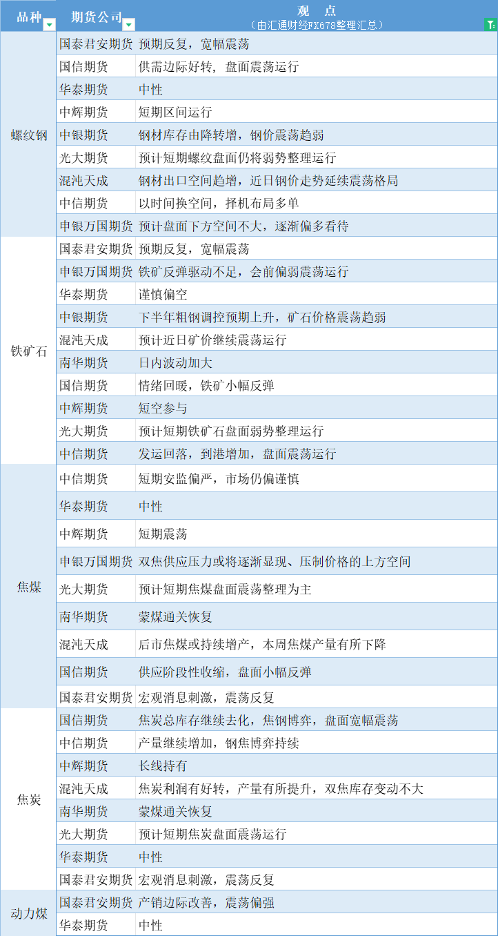 期货公司观点汇总一张图:7月17日黑色系(螺纹钢、焦煤、焦炭、铁矿石、动力煤等)