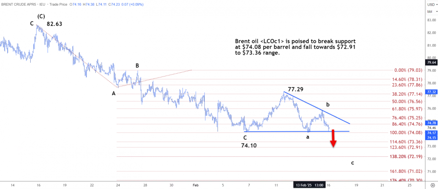 技术分析:布伦特原油有望跌至72.91美元至73.36美元区间