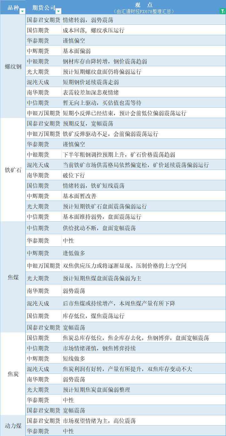 期货公司观点汇总一张图:7月11日黑色系(螺纹钢、焦煤、焦炭、铁矿石、动力煤等)