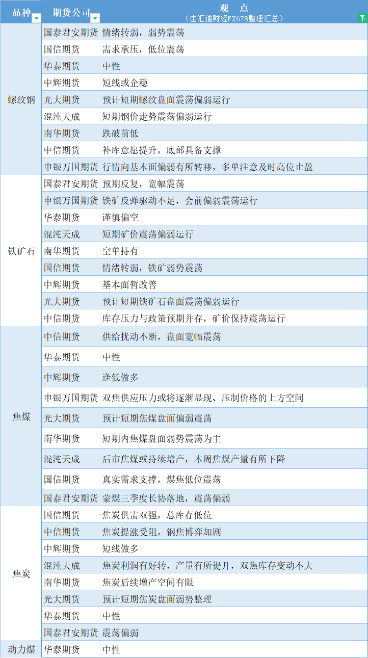 期货公司观点汇总一张图:7月9日黑色系(螺纹钢、焦煤、焦炭、铁矿石、动力煤等)