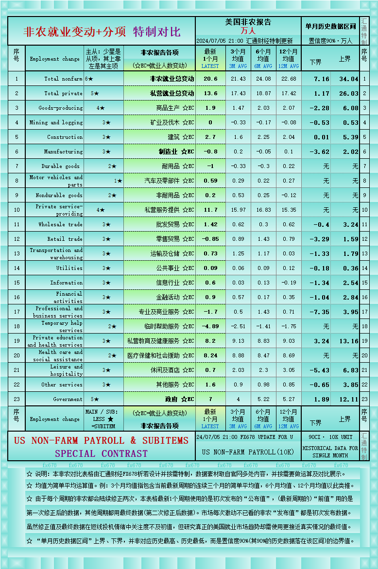 非农引爆黄金飙升,一张图详解非农“细分项”及各类均值