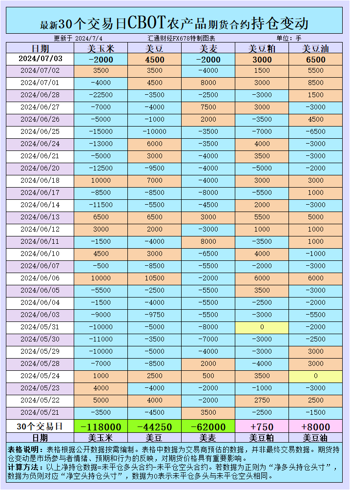 CBOT持仓变动:大豆市场展现强势,小麦与玉米市场情绪分化