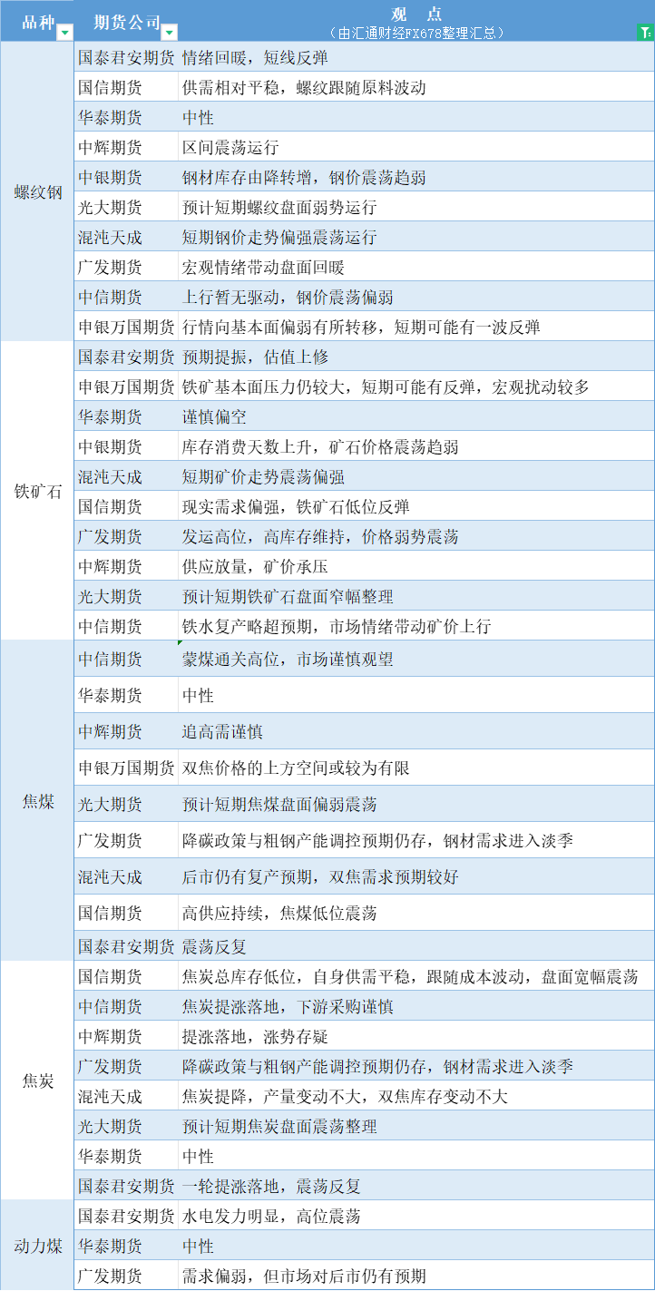 期货公司观点汇总一张图:6月27日黑色系(螺纹钢、焦煤、焦炭、铁矿石、动力煤等)