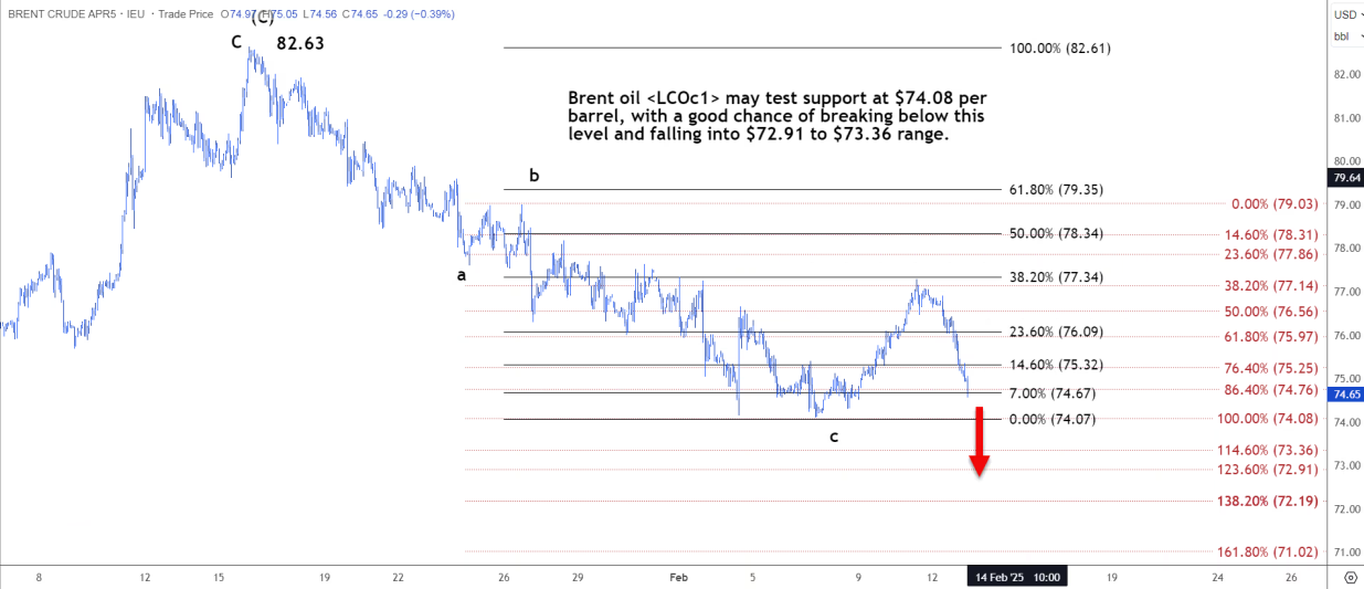 技术分析:布伦特原油或测试74.08美元的支撑位