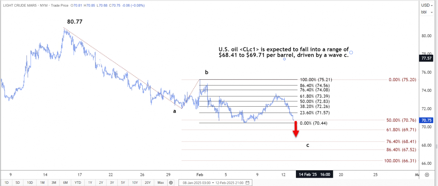 技术分析:美国原油将跌至 68.41-69.71 美元区间