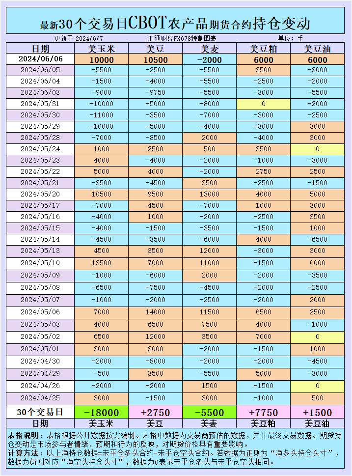 CBOT持仓:基金增美玉米大豆净多头,增美小麦净空头