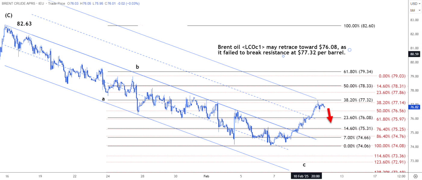 技术分析:布伦特原油可能回落至76.08美元