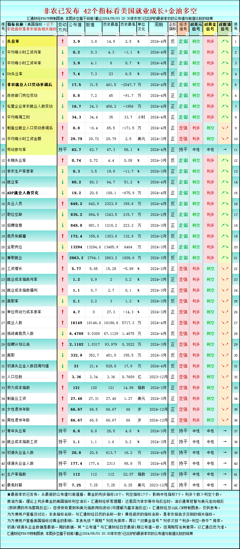 一张图看非农:42个美国就业指标,黄金的利多指标翻一倍