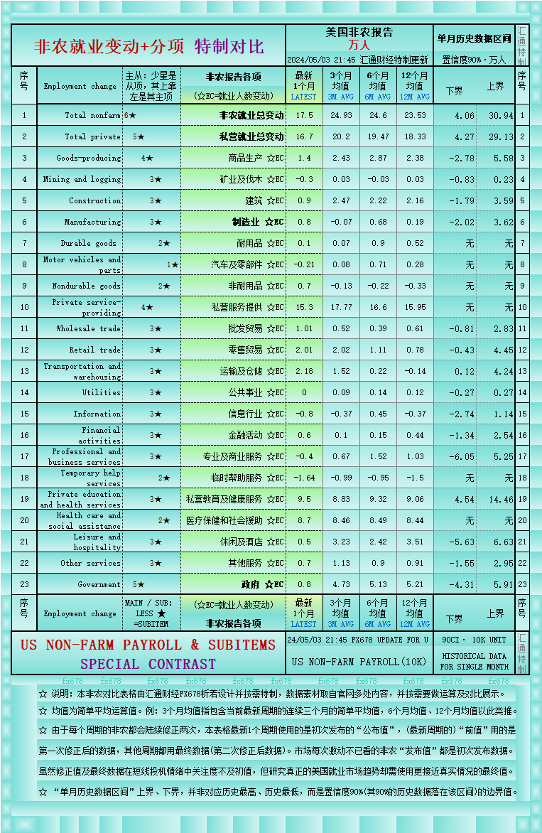 研究非农“细分项”的看过来,一张图详解非农及各行业分项