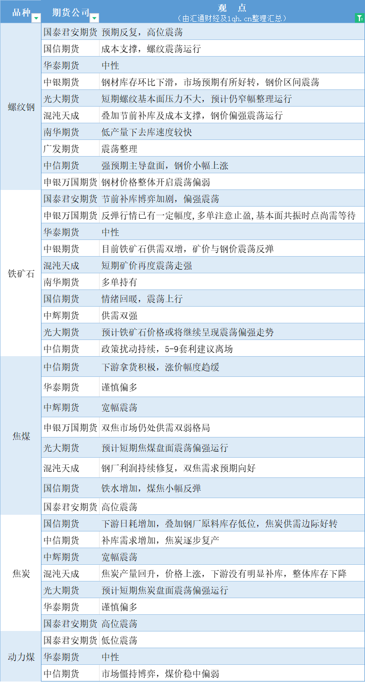 期货公司观点汇总一张图:4月25日黑色系(螺纹钢、焦煤、焦炭、铁矿石、动力煤等)