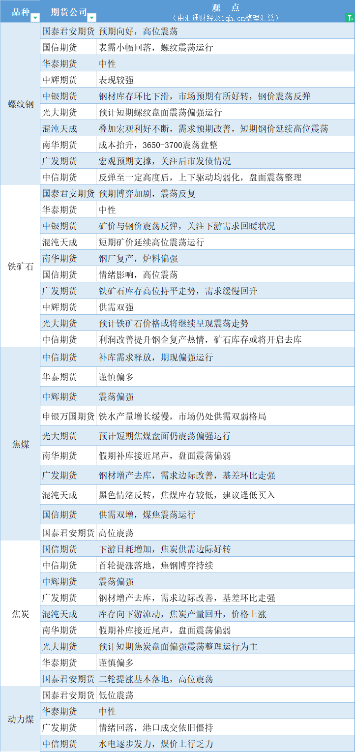 期货公司观点汇总一张图:4月23日黑色系(螺纹钢、焦煤、焦炭、铁矿石、动力煤等)