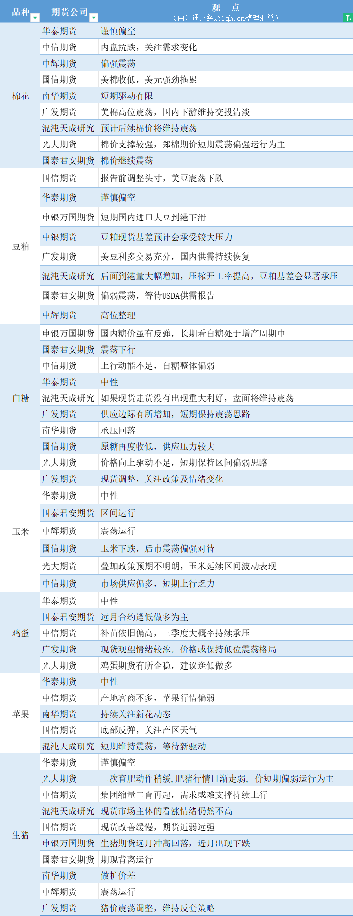 期货公司观点汇总一张图:4月11日农产品(棉花、豆粕、白糖、玉米、鸡蛋、生猪等)