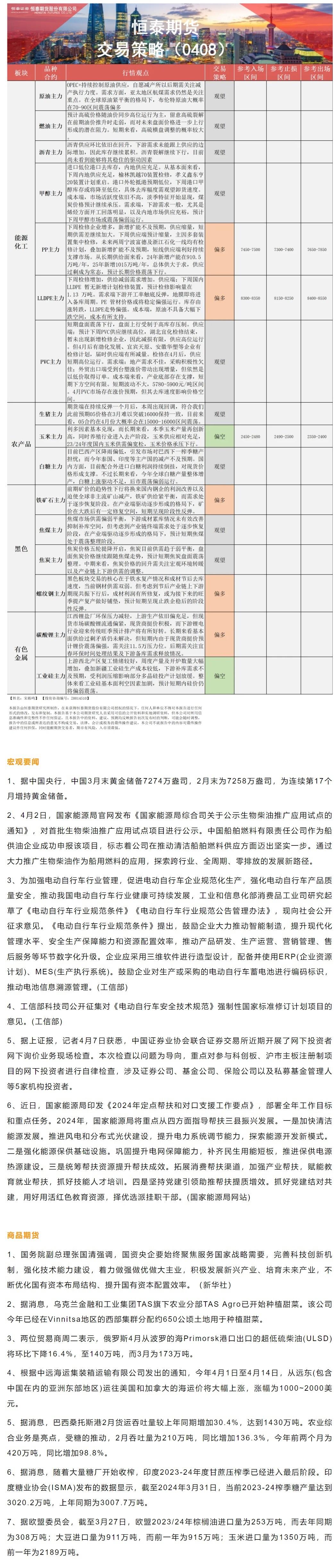 恒泰期货4月8日早盘交易策略