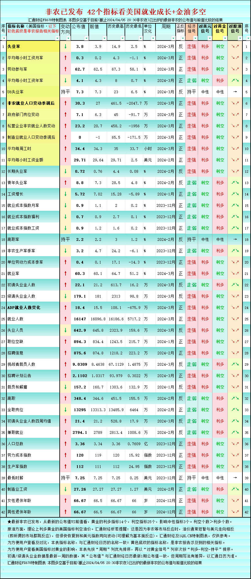 一张图:美国42个就业指标中,利多黄金的由21个突降至14个