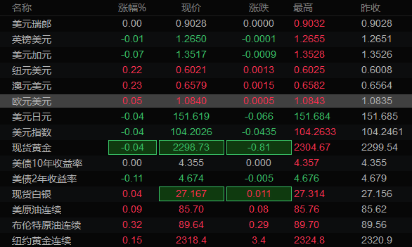 美国时段:6大货币对、美元指数及黄金阻力/支撑位