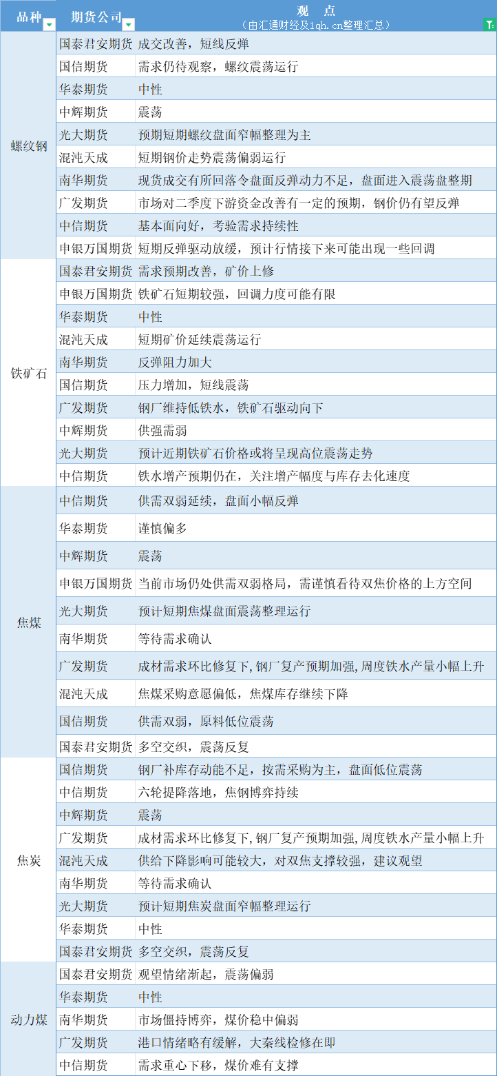 期货公司观点汇总一张图:3月26日黑色系(螺纹钢、焦煤、焦炭、铁矿石、动力煤等)