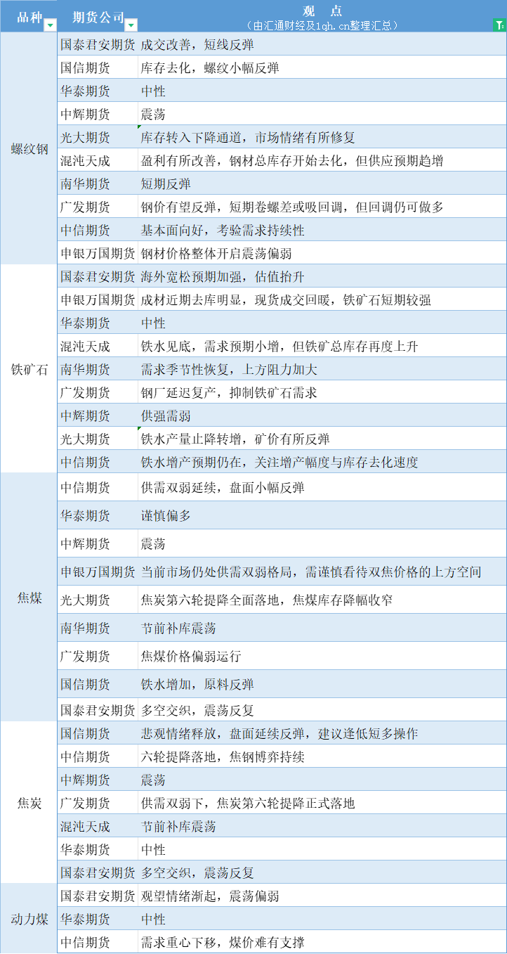 期货公司观点汇总一张图:3月25日黑色系(螺纹钢、焦煤、焦炭、铁矿石、动力煤等)