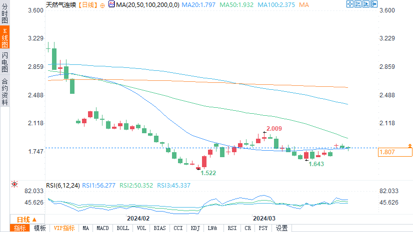 需求预测下降,纽交所天然气期货价格下降至1.80美元附近