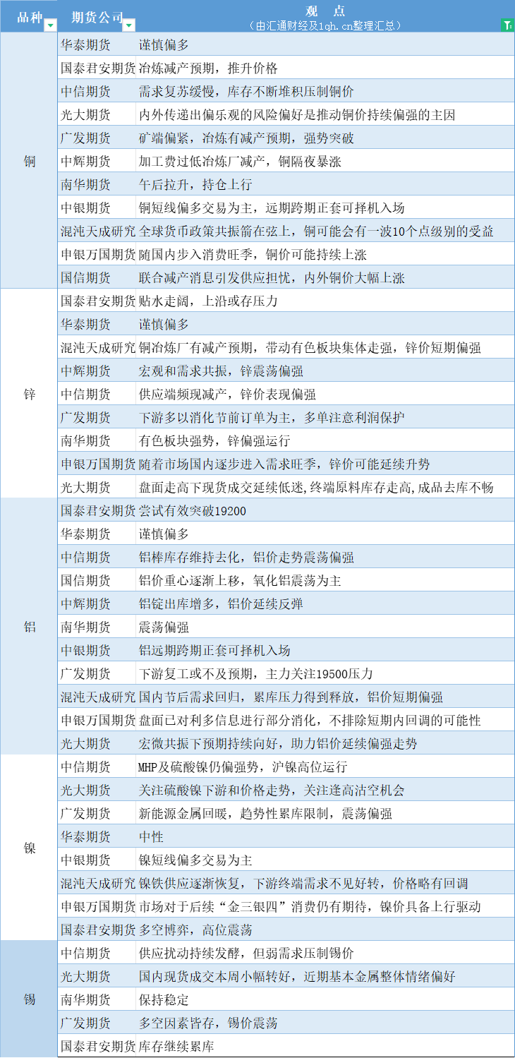期货公司观点汇总一张图:3月14日有色系(铜、锌、铝、镍、锡等)