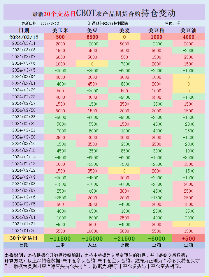 CBOT持仓:基金增加美豆美玉米净多头,全球市场供应过剩仍旧主导