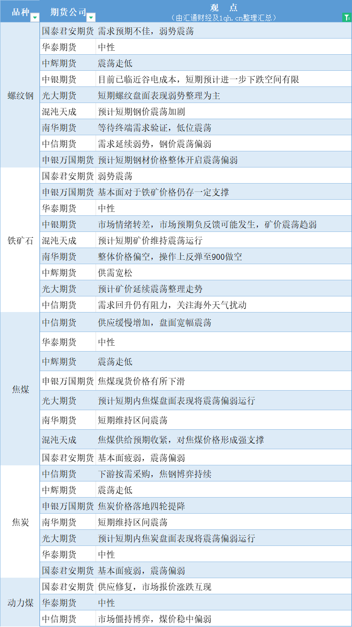 期货公司观点汇总一张图:3月7日黑色系(螺纹钢、焦煤、焦炭、铁矿石、动力煤等)