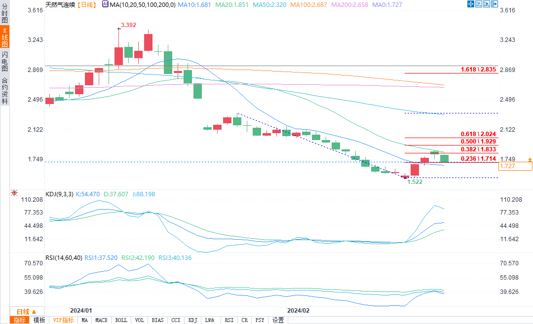 2月23日天然气技术分析:或将进一步下跌至1.70美元附近