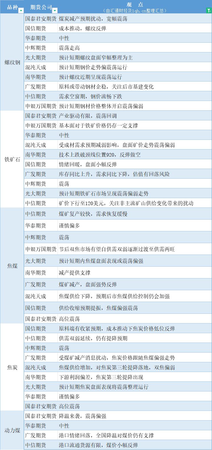 期货公司观点汇总一张图:2月22日黑色系(螺纹钢、焦煤、焦炭、铁矿石、动力煤等)