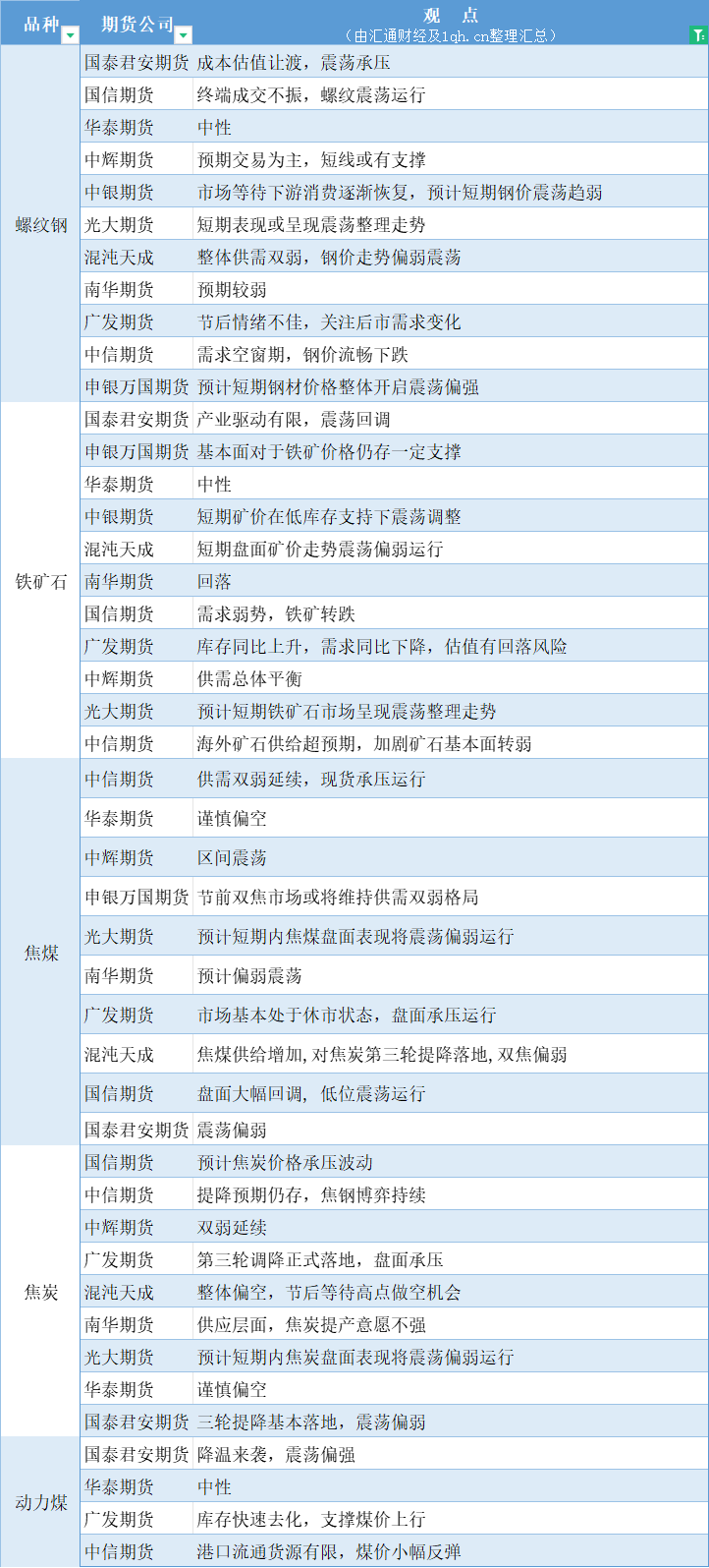 期货公司观点汇总一张图:2月20日黑色系(螺纹钢、焦煤、焦炭、铁矿石、动力煤等)