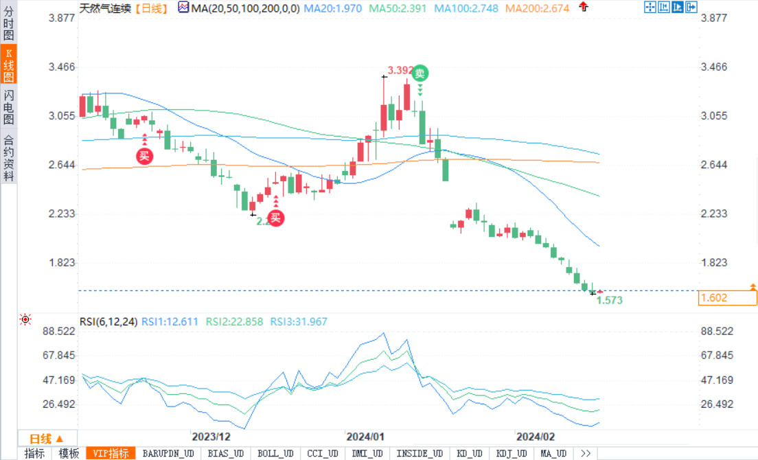 天然气交投于1.60美元附近,面临更大的下行压力