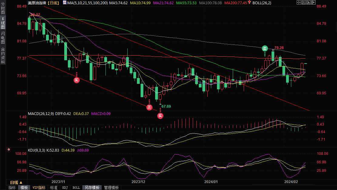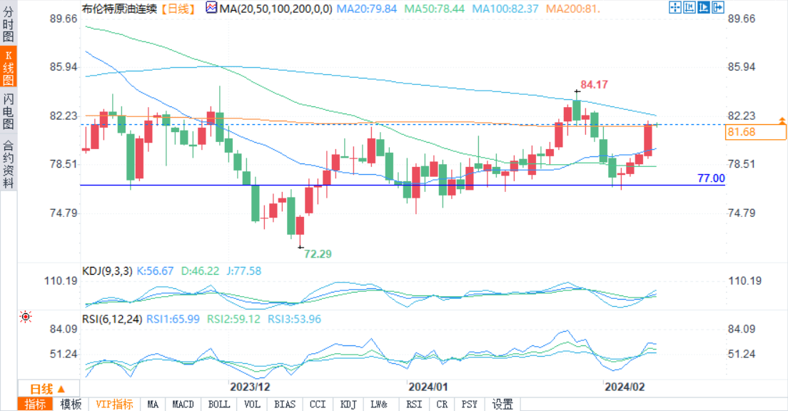 中东局势动荡推动油价上涨,布伦特原油飙升至80美元以上,初步攻占200日均线