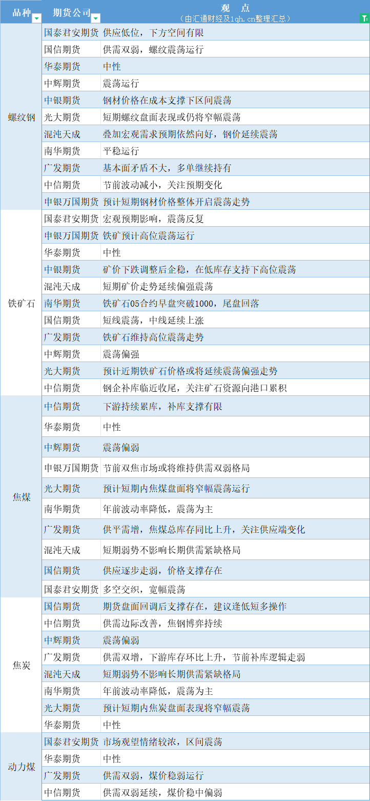 期货公司观点汇总一张图:1月30日黑色系(螺纹钢、焦煤、焦炭、铁矿石、动力煤等)