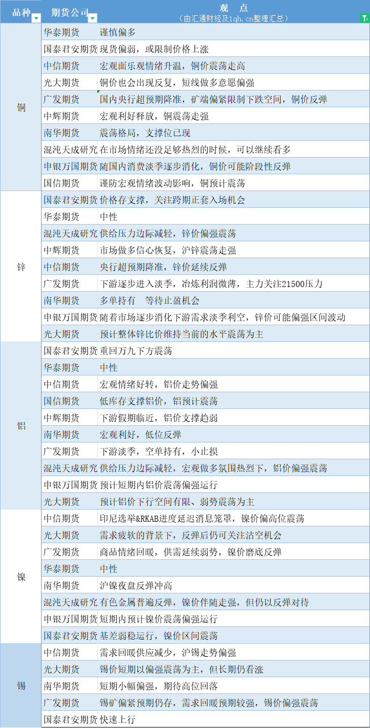 期货公司观点汇总一张图:1月26日有色系(铜、锌、铝、镍、锡等)