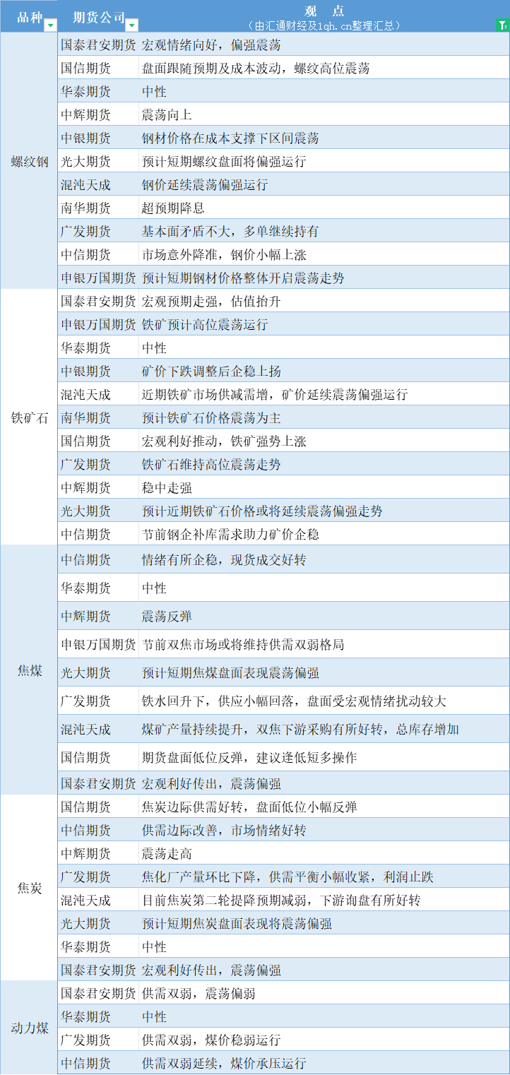 期货公司观点汇总一张图:1月25日黑色系(螺纹钢、焦煤、焦炭、铁矿石、动力煤等)