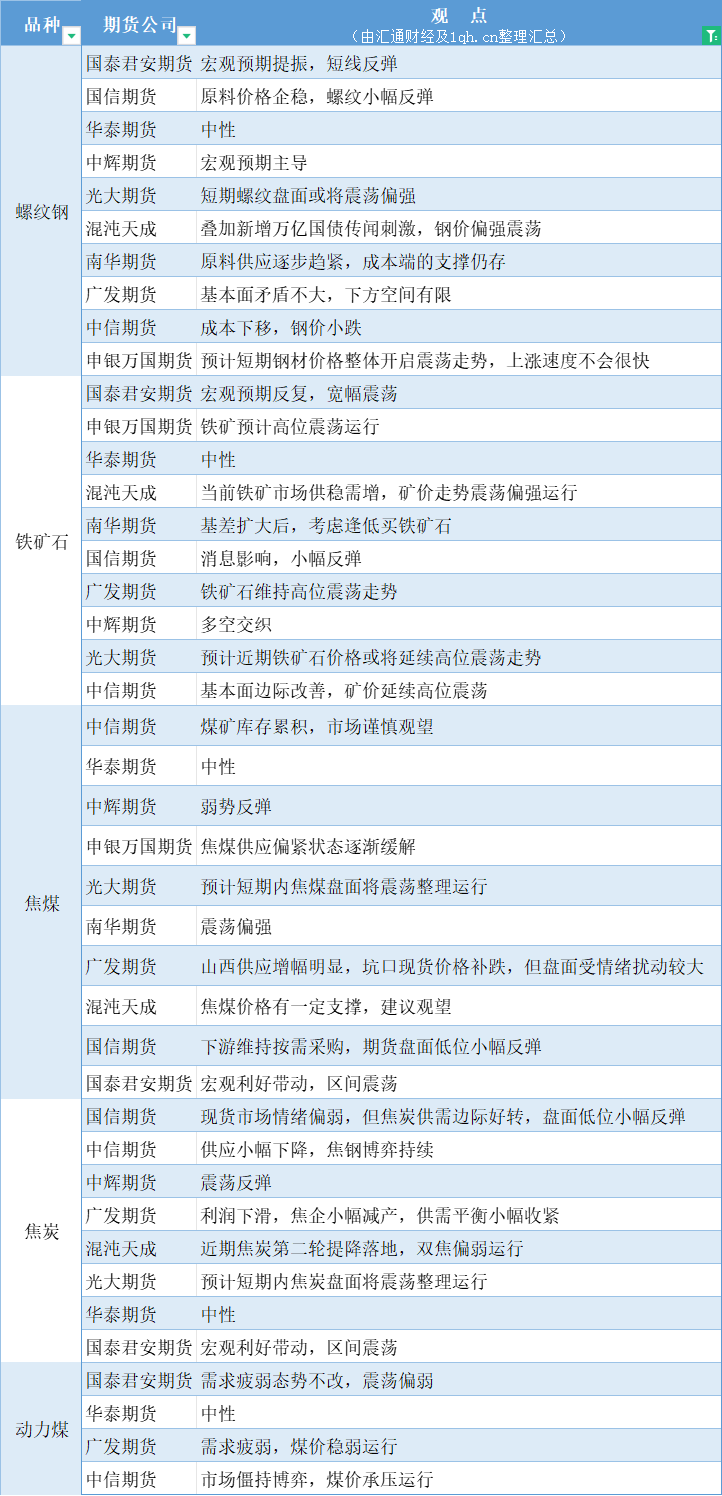期货公司观点汇总一张图:1月17日黑色系(螺纹钢、焦煤、焦炭、铁矿石、动力煤等)